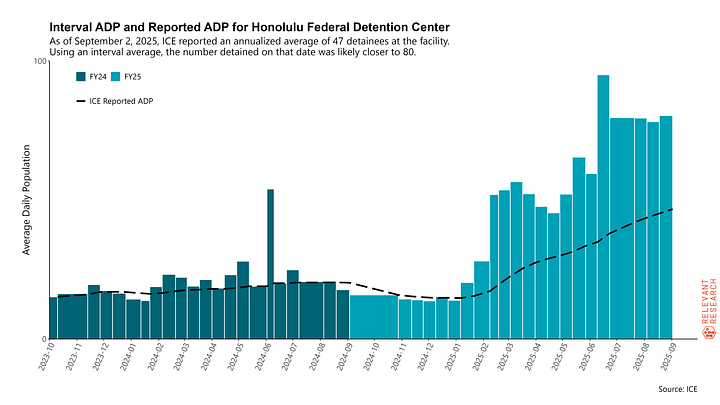 If you notice any issues on the website that aren’t reflected in our data processing notes, please don’t hesitate to reach out to Adam at adam@relevant-research.com. Your feedback continues to be invaluable in improving this resource for the public. As immigrant detention continues its dramatic growth, we remain committed to making this critical data as accessible and reliable as possible.