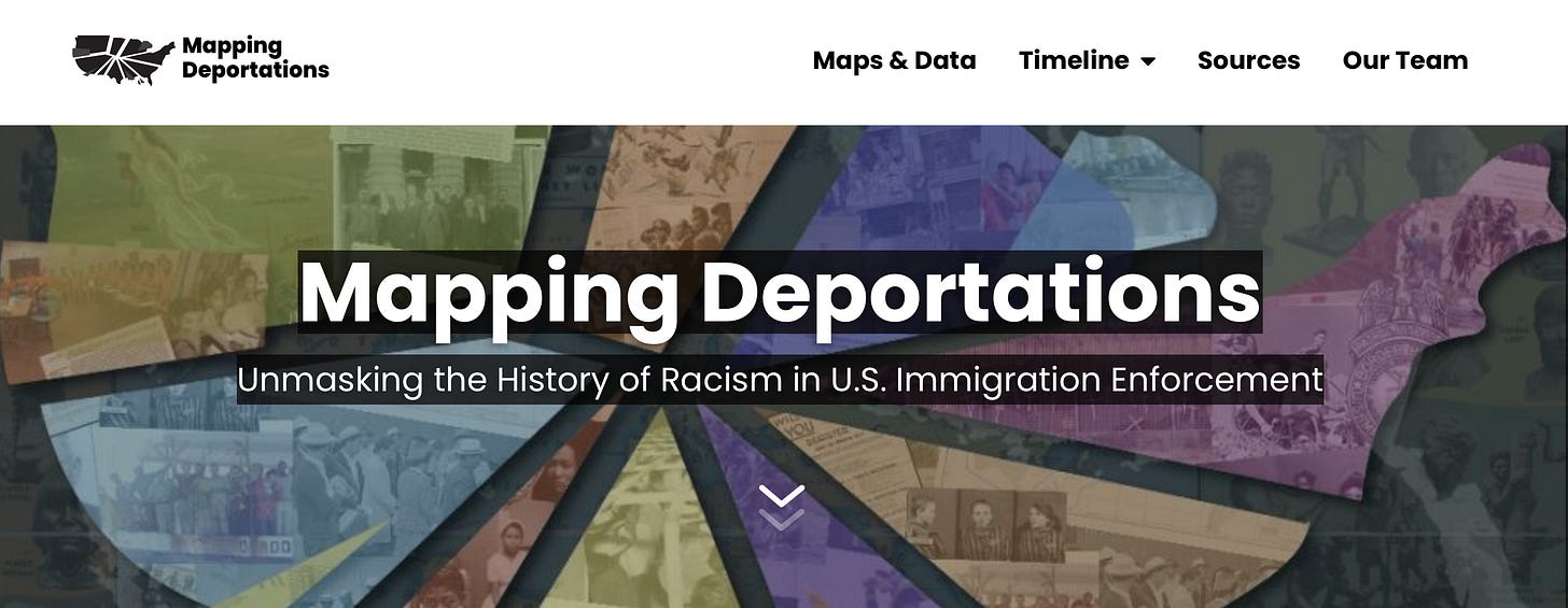 The recently launched Mapping Deportations project emerges from this line of research and critique as a rich source of historical deportation data and policies that illustrates the longstanding relationship between immigration controls and structural racism. The project examines the data, policy, and racial ideologies behind immigration policy from 1790 to today, and integrates this deep research into an engaging and interactive website portfolio that is easy to recommend for teachers, students, and researchers looking for a single, comprehensive source of vetted information.