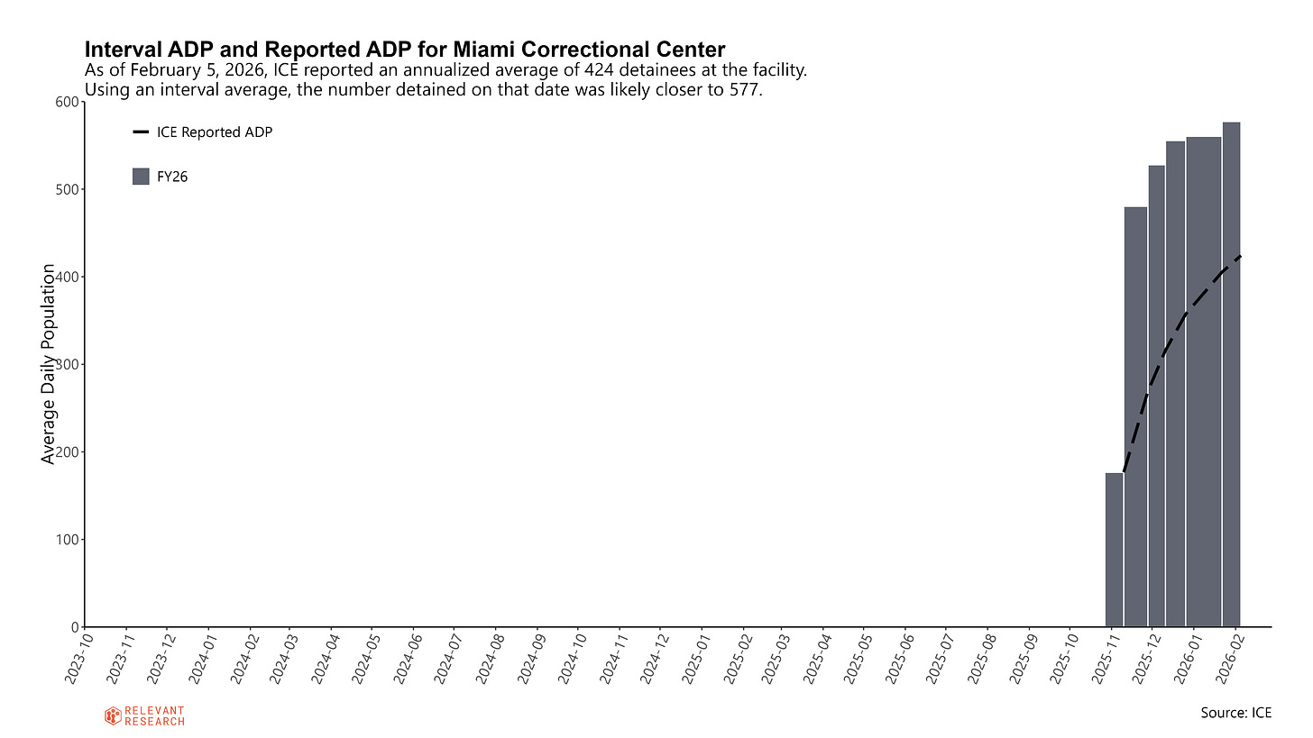 The death occurred at the Miami Correctional Facility in Indiana. Notably, I had just written about this facility in our latest update to DetentionReports.com because it was one of the facilities with significant growth in population despite an overall slight decline in the national detained population.